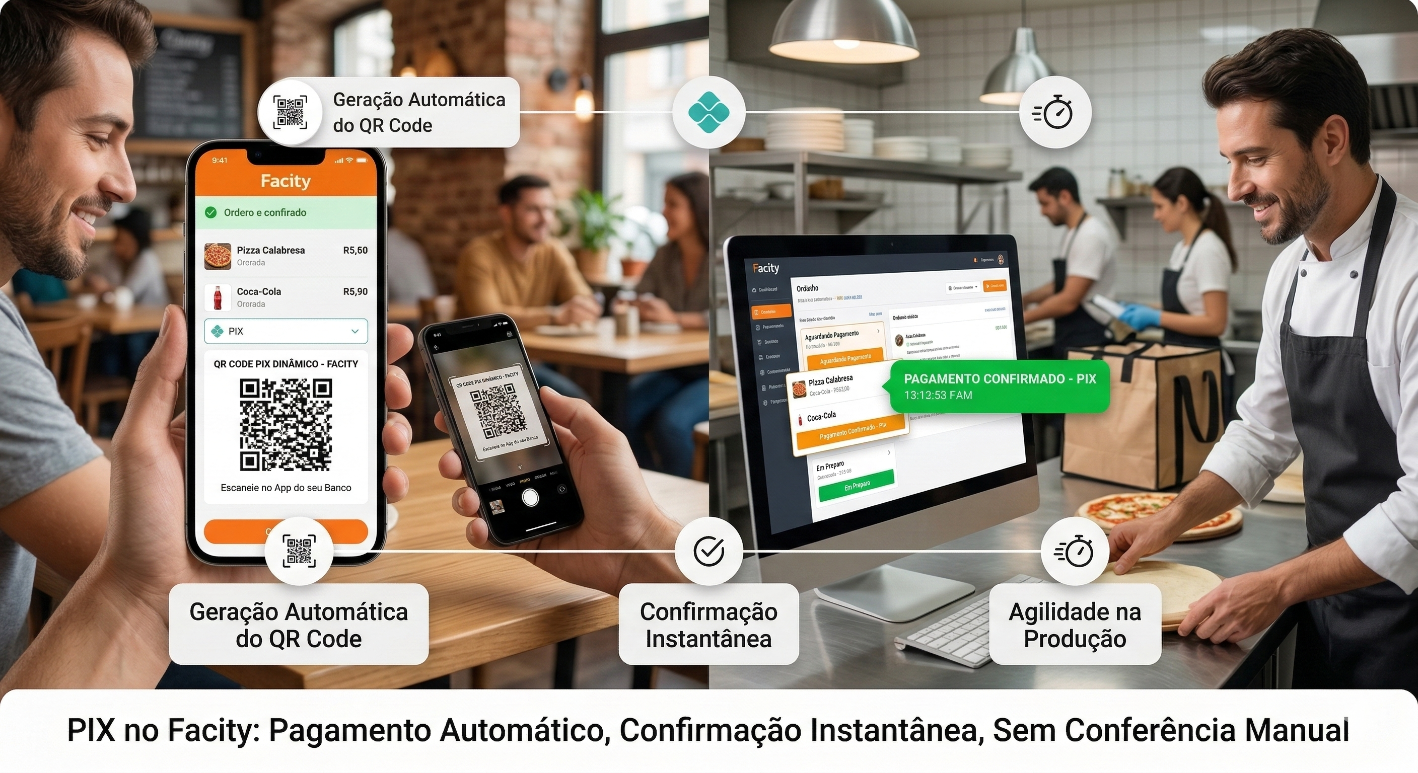Com a Facity, o seu negócio pode contar com cardápio digital, pedidos online e pagamento PIX integrado em uma experiência mais prática para o cliente e mais organizada para a operação.